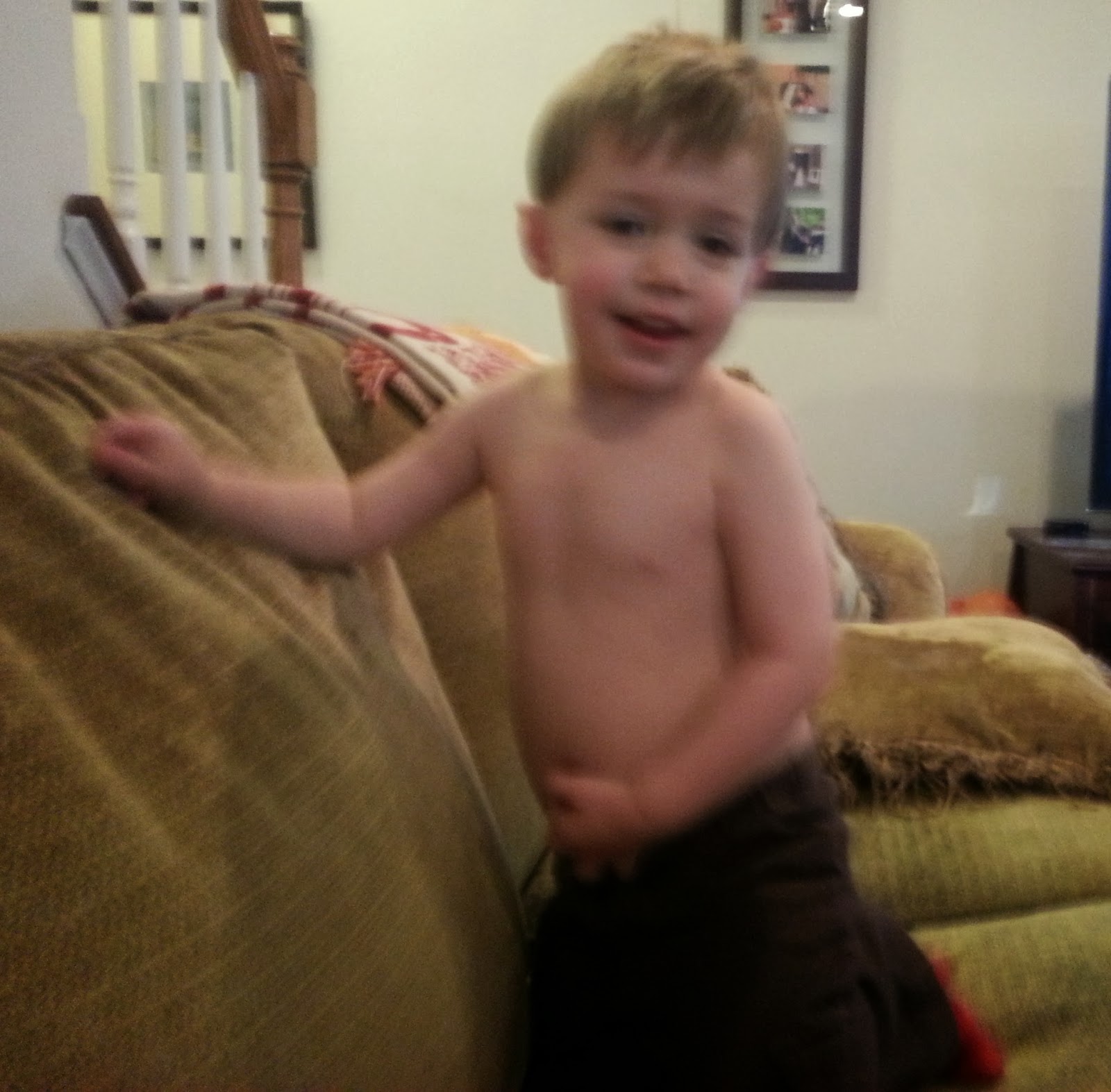 Charlie told us today a couple of times that he didn't feel good. When asked what hurt. He told me his body hurt. I then asked him about his different body parts. I was able to rule out that his fingers, hands, and arms did not hurt. However, his tummy, ears, legs and feet did hurt. I'm not sure what that was all about. He also complained of being hot so he took his shirt off to cool down.